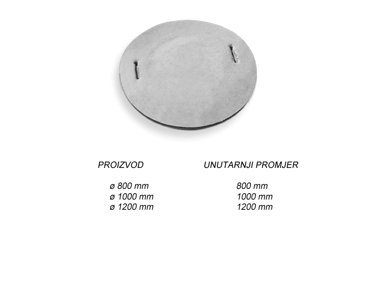 U našem asortimanu možete pronaći betonske poklopce s dvije ručke. Namjeravana uporaba građevnog proizvoda, u skladu s primjenjivim usklađenim tehničkim specifikacijama: zatvaranje vertikalno postavljenih betonskih cijevi istog promjera (septičke jame, bunari, šahtovi).