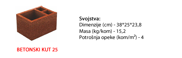 Specijalna opeka (cigla) idealno je rješenje za zvučnu izolaciju između dva stana ili u stubištu. Jednostavna ugradnja sa klasičnim mortom. Odlično rješenje za akumulaciju topline koja je posebno važna u prijelaznim periodima. Ispitivanje provedeno na Institutu ZAG Ljubljana.