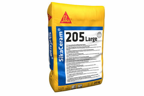 Ljepilo u prahu za polaganje keramičkih pločica velikih dimenzija, klase C2TE u skladu s EN 12004. SikaCeram 205 Large je jednokomponentna mješavina ljepila koja se sastoji od visoko-otpornih cemenata, odabanih silicij/kvarcnih mineralnih punila i posebnih dodataka.