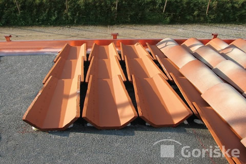 10. Sljemenjak - element koji omogućuje kvalitetnu izradu sljemena i grebena na krovu. Oblikovan je jednako kao i kanalica, samo je veći. Kod obojenih krovova upotrebljavamo sljemenjake u nijansama boja krova.