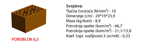 Klasična blok opeka dimenzije 290/190/190 mm, omogućuje izvedbu zidova od 19 cm i 29 cm.