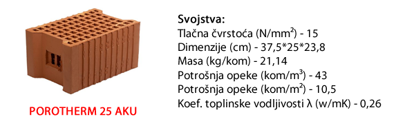 Specijalna opeka (cigla) idealno je rješenje za zvučnu izolaciju između dva stana ili u stubištu. Jednostavna ugradnja sa klasičnim mortom. Odlično rješenje za akumulaciju topline koja je posebno važna u prijelaznim periodima. Ispitivanje provedeno na Institutu ZAG Ljubljana.