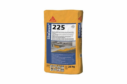 Deformabilno cementno ljepilo za podne i zidne keramičke pločice, za unutarnju i vanjsku primjenu, smanjenog klizanja i produženog otvorenog vremena. Klasa C2TE S1 prema EN 12004. SikaCeram 225 je pripremljena praškasta mešavina, visokokvalitetnih cemenata, sa sadržajem polimera, odabranih silikonskih/kvarcnih mineralnih punila sa specijalnim dodacima. Spreman za korišćenje uz dodatak vode. Može se koristiti za
