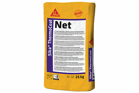 Sika ThermoCoat Net omogućava lijepljenje izolacijskih ploča od polistirena i/ili mineralne vune zahvaljujući odgovarajućem odnosu mineralnih veziva i sintetičkih smola. Također, odgovarajući udio specifičnih dodataka daje mortu odličnu obradljivost, vodoodbojnost i fleksibilnost.
