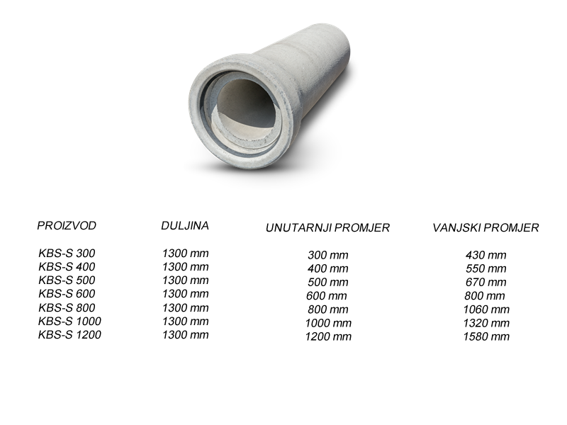 Ima ugrađenu gumenu brtvu prema HRN EN 1916:2005, dužine 1300 mm.